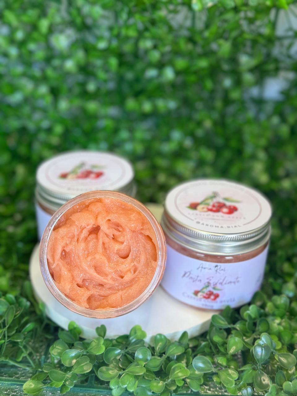 Nossa Pasta Esfoliante Cereja com Avelã combina a doçura marcante da cereja com a suavidade cremosa da avelã, em uma fórmula que esfolia delicadamente e nutre intensamente a pele.