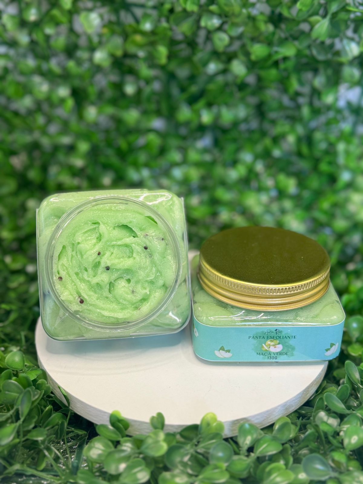Nossa Pasta Esfoliante Maçã Verde une a esfoliação delicada ao cuidado nutritivo de uma fórmula rica em manteiga vegetal de manga, óleos vegetais de gérmen de trigo e coco de babaçu, e extrato de leite de cabra.
