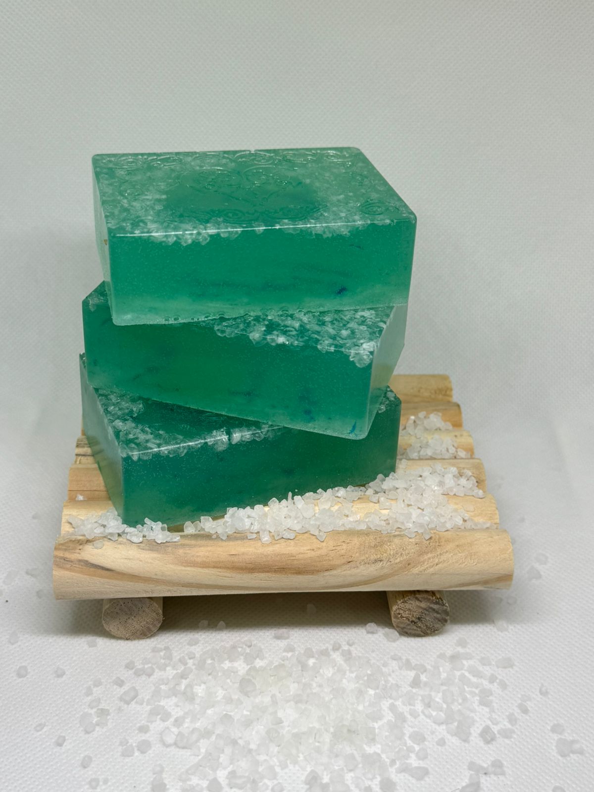Base Glicerinada, Essência Algas Marinhas, Extrato de Algas Marinha, Lauril, Sal Grosso e Corante.